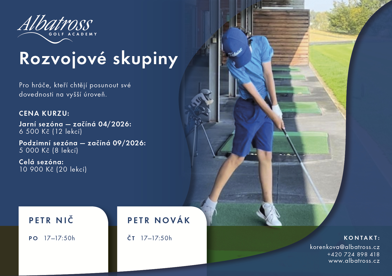 Rozvojové skupiny vznikly jako přirozený můstek mezi KIDS Academy a týmovou částí akademie. Jsou určeny pro hráče, kteří už mají platný HCP, chtějí se dále zlepšovat a postupně se připravit na vstup do našich soutěžních týmů.